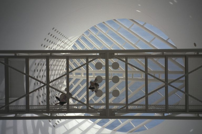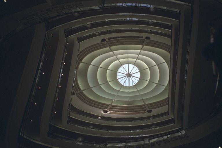 Here's that skylight from below. You have to cross the mesh walkway to get to the last wing of exhibits. After the Walker Evans photographs and the 20th century show drawn from the museum's collection it definitely seems worth it, but don't look down. |